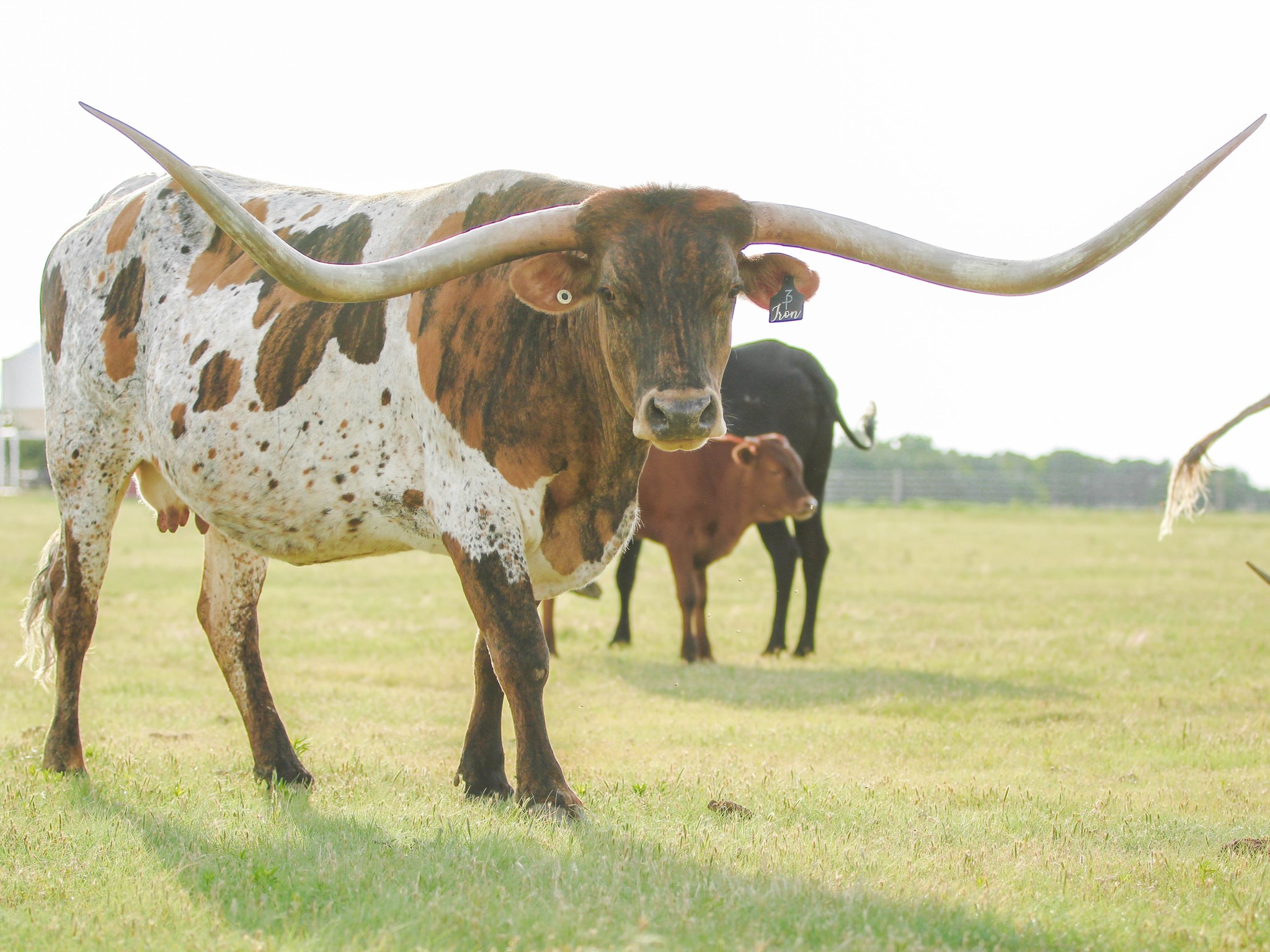 Iron is about as gorgeous and correct as they come. A big bodied gal who's a great milker and an excellent attentive mother. She's a tall, beautiful brindle and white who's produced several knockout heifers and amazing herd sires. She's part of Club 90 and making her mark as one of the best Drag Iron daughters out there in size, color, production, and horn. She's a futurity winner and a production powerhouse.