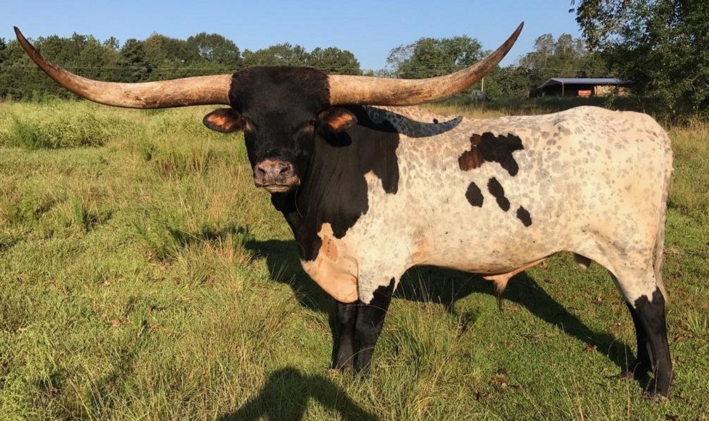 This is an own son of the longest horn bull on record, Cowboy Tuff Chex. His dam is one of the prettiest longhorn cows ever. Tuff Enuff Chex consistently sires beautiful brindle and Parker brown calves. If you are looking for a bull who can lower the higher horned cows, he's your guy. Just look at his offspring for the proof.