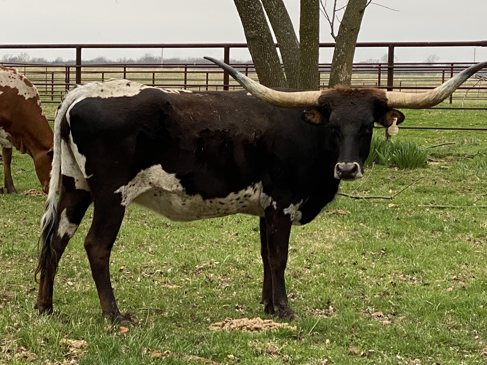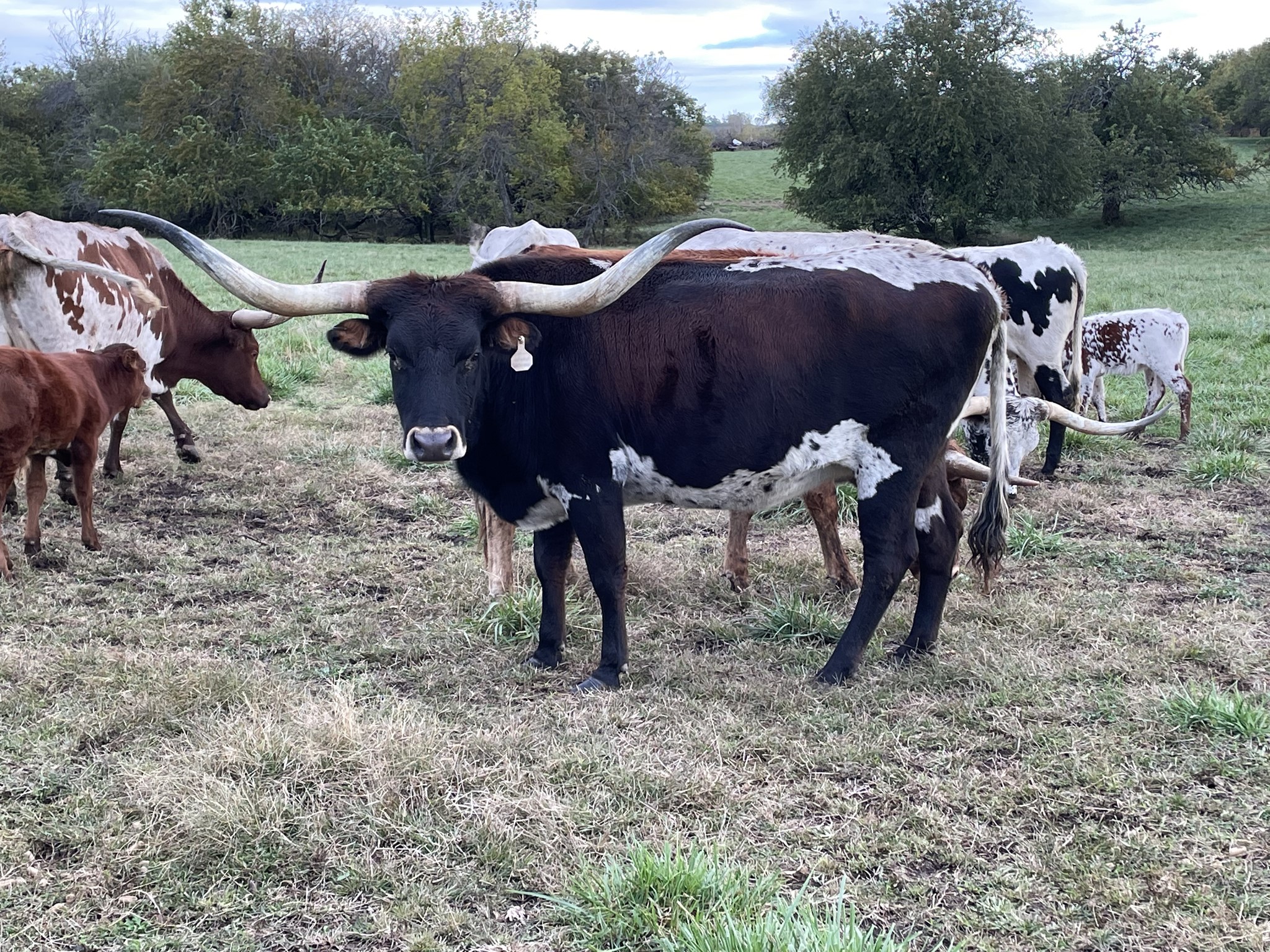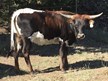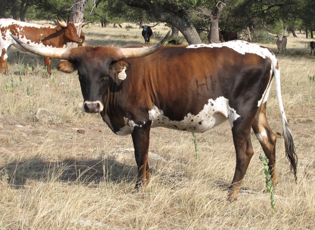 Beautiful dark Parker brown and spotted line back cow. She is a super easy keeper and her horns have just started to twist and roll. Give her a couple of more years and the twist is going to be spectacular!