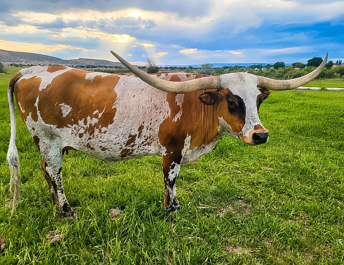 Diamond Crest Longhorns raises Texas Longhorn cattle in Colorado focusing on horn growth, body, and strong genetics including Red Baron, Gold Mine 1, Rebel HR, and Drag Iron bloodlines.