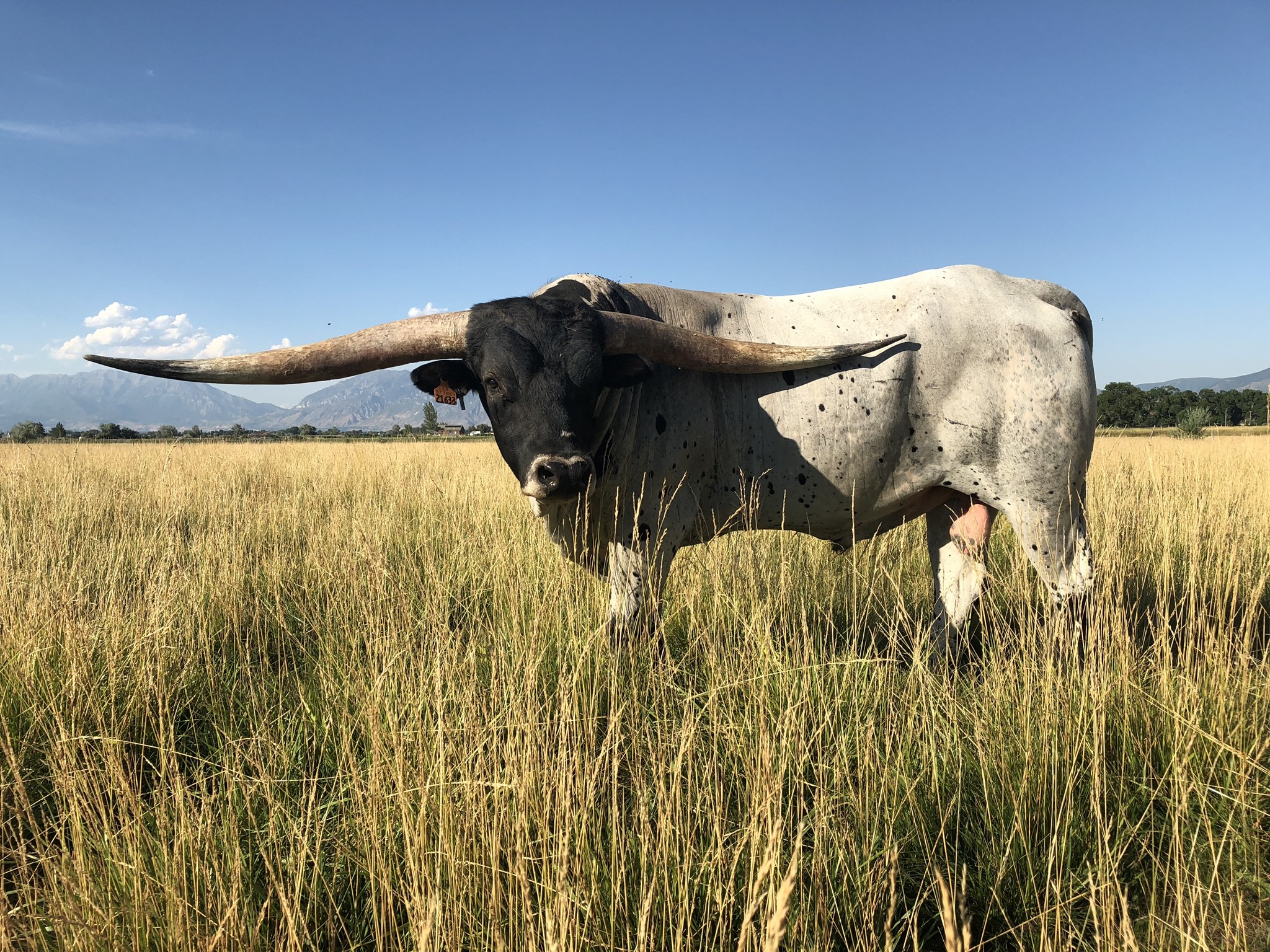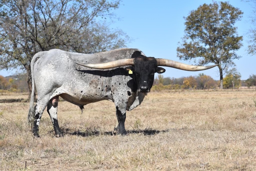 Rocket Man measured 90 1/2 inches tip to tip on 1/2/23. He won his class at the 2018 HSC with 84.5625 TTT at just 3 1/2 years old. He is truly an extraordinary bull that has even exceeded his sire, PCC Rim Rock. If you want to add size, Rocket Man 10 will do just that. He is a tall, stout, full bodied bull that has some of the flattest, lateral horns you can find. Known to lay down high horns on his progeny, Rocket Man 10 is the total package. Conventional straws are available at Champion Genetics and also REI in Stillwater, OK. Contact Cale at 580-461-2914 for any questions or additional info.