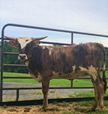 Beautiful backward twist on a brindle bombshell.... add in the great Syndicate Sitting Bull and Fifty-Fifty BCB AND HL Cow Patty and you have unstoppable genetics in one little package!